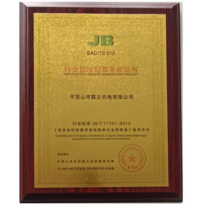 行業(yè)標(biāo)準(zhǔn)起草單位證書